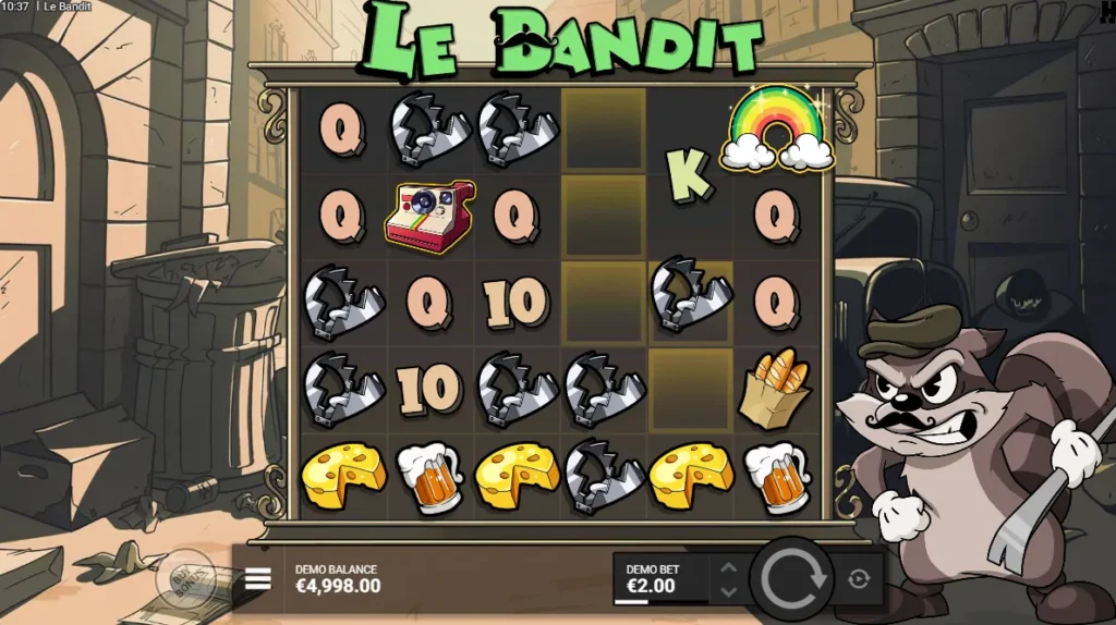 Le Bandit is a unique slot machine from the renowned provider Hacksaw Gaming, which transports players to the atmosphere of French streets, where the charismatic raccoon-bandit named Smokey is the main character. This slot combines a criminal theme with innovative game mechanics, creating an unforgettable experience for gambling enthusiasts.